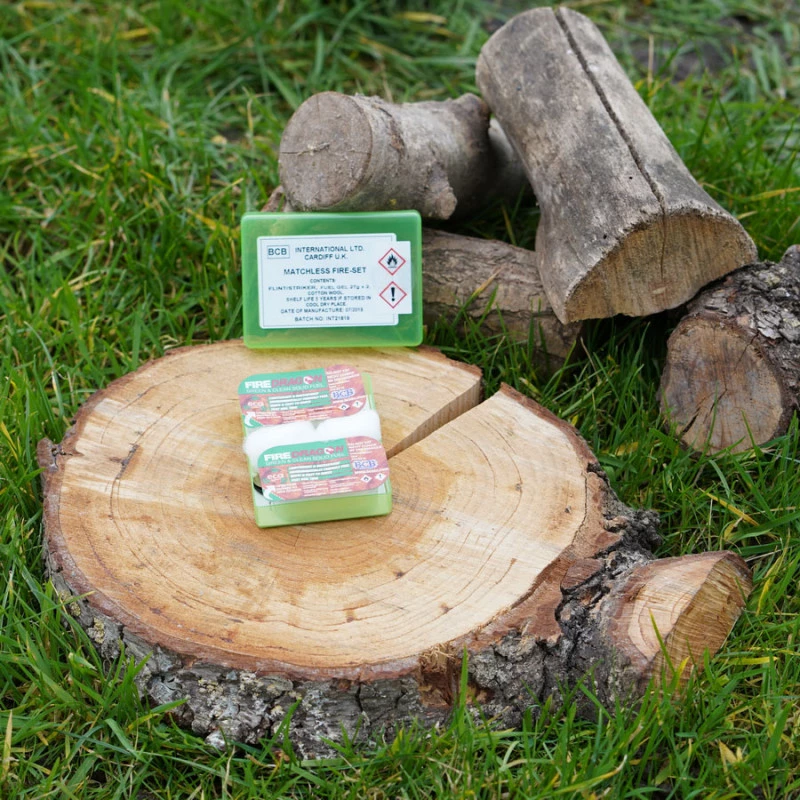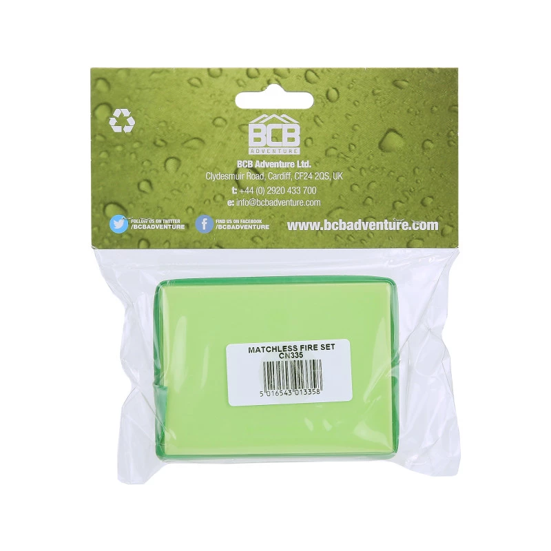 La boite contient des blocs d’hexamine, de l’ouate compréssée, un tampon et un silex d’allumage. Ce kit a l’avantage de durer beaucoup plus longtemps qu’une boite d’allumettes et ses composants sont scéllés. Taille: 8,5 x 6 x 2,5 cm Poids: 100 g