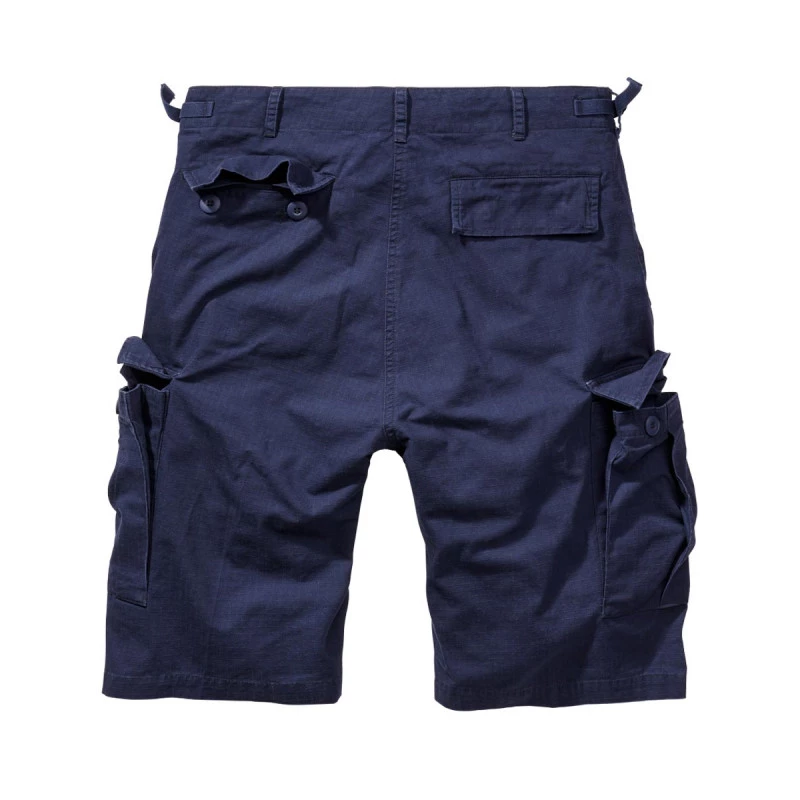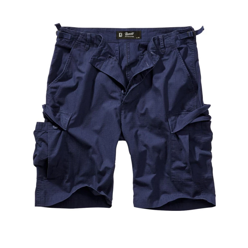 Bermuda militaire couleur bleu marine de la marque Brandit en ripstop 100% Coton, léger, fonctionnel et résistant aux déchirures, matière agréable à porter l’été.