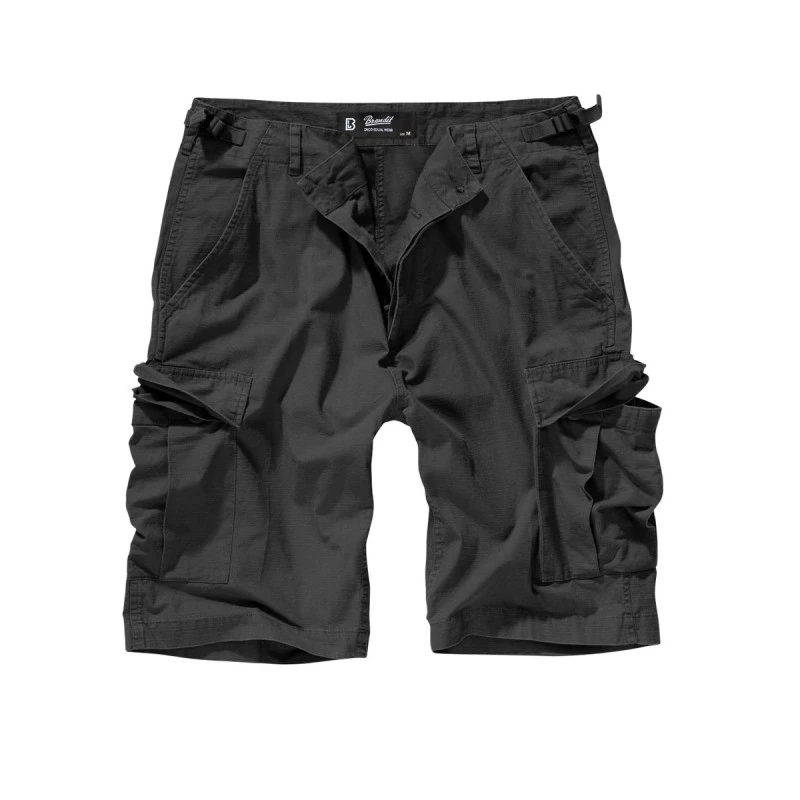 Bermuda militaire noir de la marque Brandit en ripstop 100% Coton, léger, fonctionnel et résistant aux déchirures, matière agréable à porter l’été.