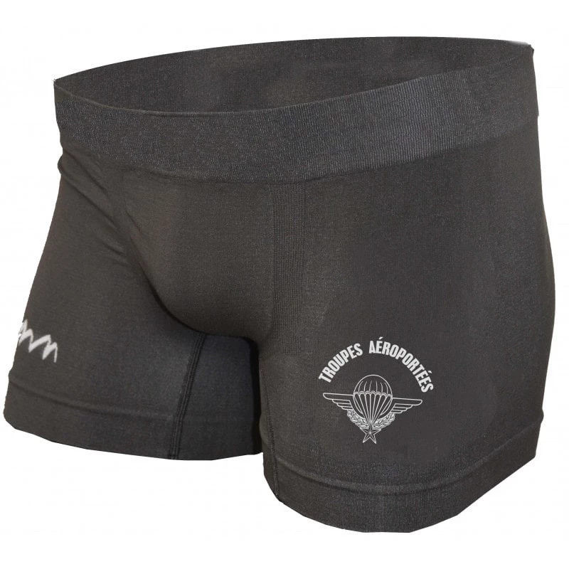 Sur le boxer noir, le logo des troupes aéroportées est imprimé sur la cuisse gauche du boxer, donnant un look un peu baroudeur et qui rappelle l’esprit militaire.