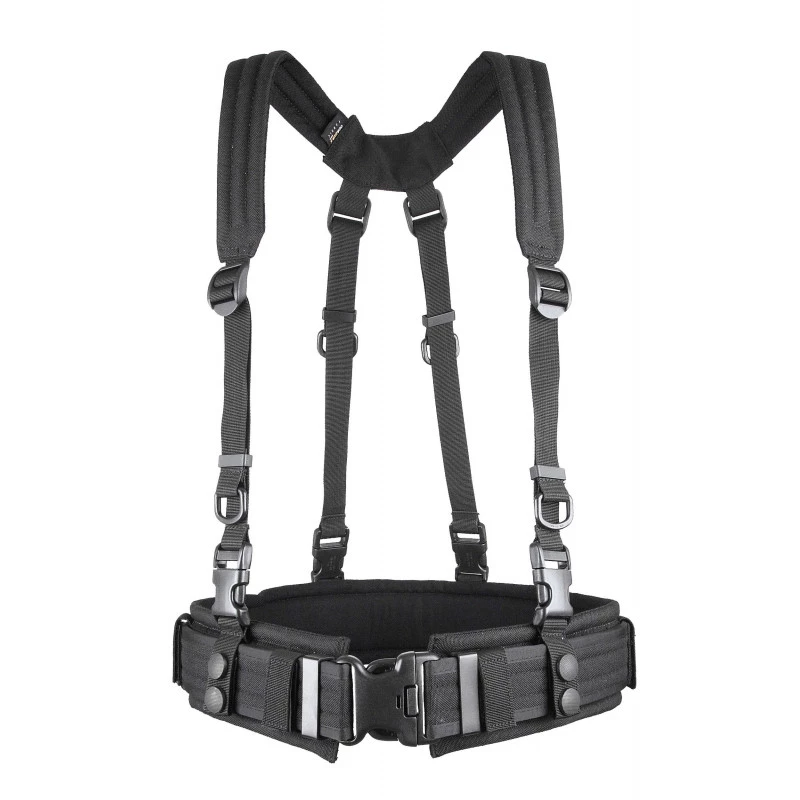 Tissu Cordura® 1000 deniers imperméable Sangles d’épaules matelassées Bretelles en nylon réglables en hauteur Clips et accessoires Duraflex® Quatre passants de maintien pour ceinture/ceinturon (50 mm) Fermeture par deux boutons-pression diamètre 20 mm recouverts de gomme anti-dérapante Livré sans ceinturon d’intervention ni ceinturon de confort Taille unique
