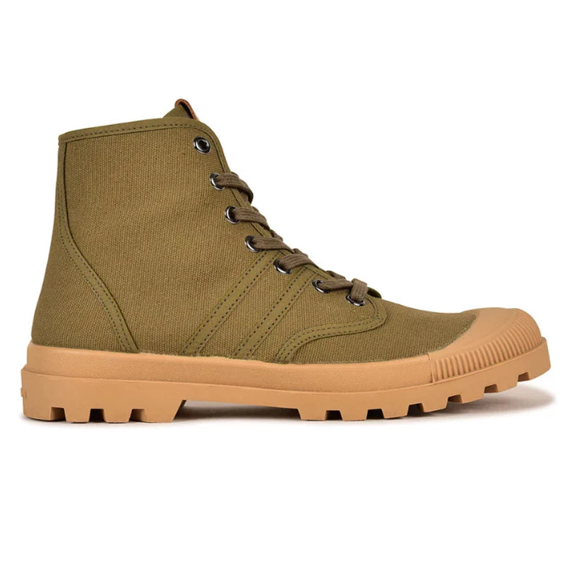 Elles sont conçues à base d’une toile kaki en coton recyclé, la semelle est très souple et en caoutchouc naturel.