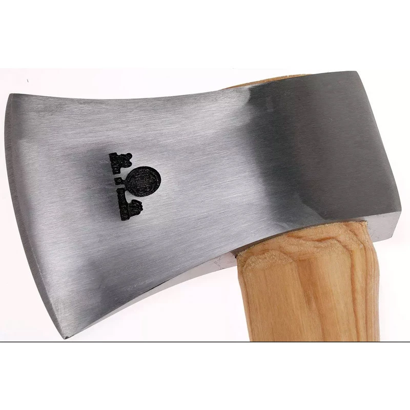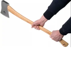 Elle offre une bonne prise en main et son long manche lui confère une grande solidité. Le manche est en hickory brut fixé à la tête avec un coin en bois et une virole en acier laminé. A noter que cette hache n’est pas livrée avec un étui de protection.