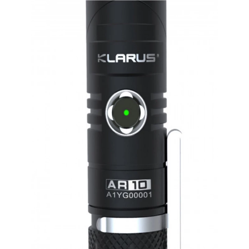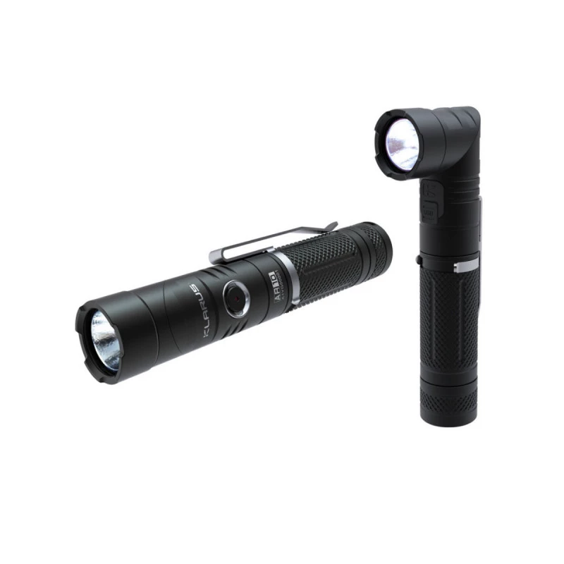 La lampe Klarus AR10 est le premier modèle ayant une tête orientable permettant à la fois de l’utiliser comme une lampe standard, mais également de pouvoir l’accrocher avec la tête orienté pour éclairer sans avoir besoin de la tenir. Très pratique pour la randonnée ou pour les agents de sécurité lors de leur ronde par exemple.