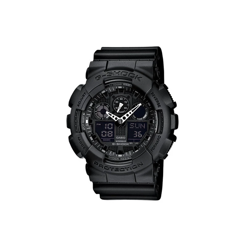 Design et moderne, la montre-bracelet analogique et numérique G-SHOCK Classic GA-100 est robuste grâce à son boîtier en résine résistant aux champs magnétiques, son cadran en verre minéral et son bracelet en résine, un matériau durable et souple
