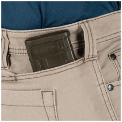En effet, en plus des 5 poches que l’on retrouve sur un jean classique, le Defender Flex Range est équipé de 2 poches supplémentaires pour mag / téléphone, avec des passants de ceinture renforcés pour soutenir une ceinture de pistolet ou EDC / CCW.