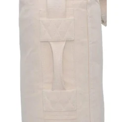Il peut se porter sur l’épaule grâce à sa grosse bandoulière ou à la main avec la poignée en tissu.