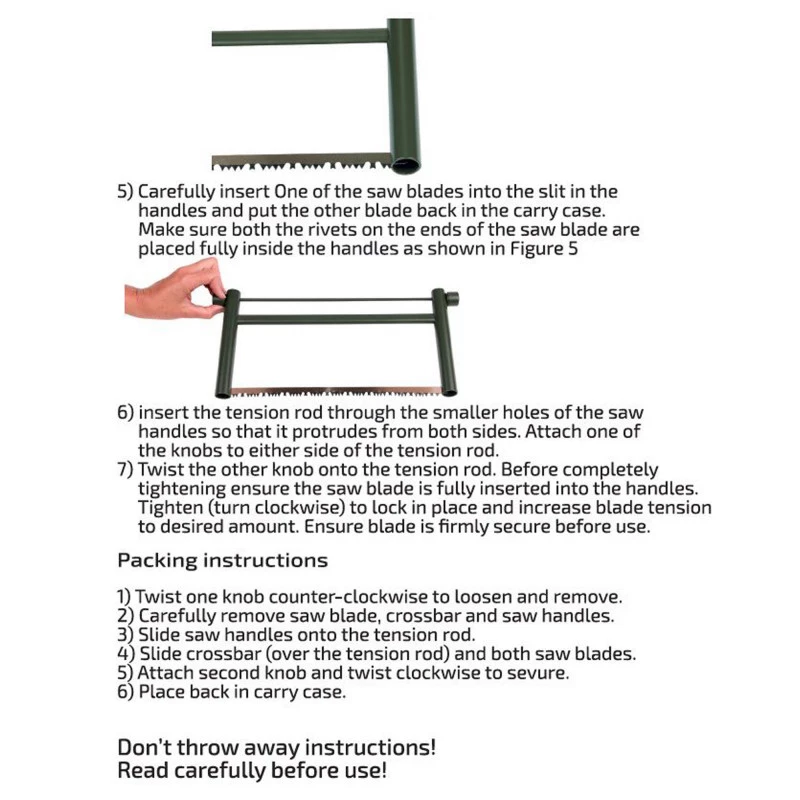 Cette scie légère et pliable est facile à utiliser dans le jardin, pour le camping, la survie et la chasse. La scie a deux types de lames, l’une pour le bois sec et l’autre pour le bois humide.