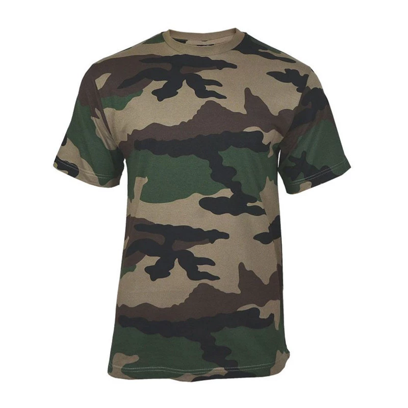 T-shirt militaire camouflage centre Europe (CE) qui est le camouflage de l’armée française, il est fabriqué en tissu 100% coton peigné léger et résistant.