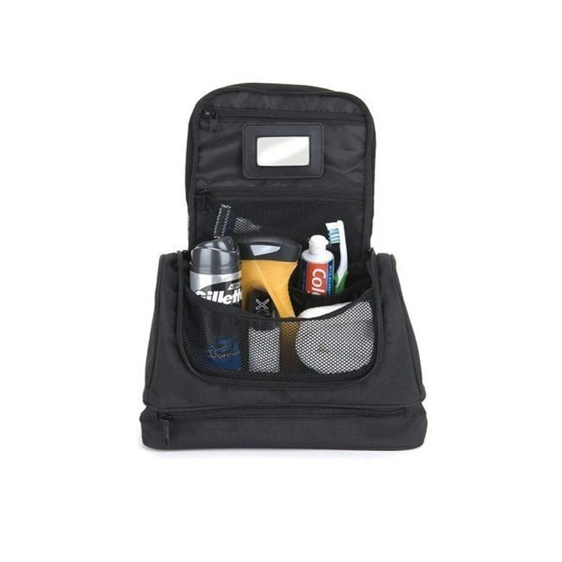 Elle est compact et fonctionnel, idéal pour organiser le nécessaire de toilette de tous les jours. Elle possède un grand espace central avec un cordon de suspension horizontale pour empêcher la trousse et son contenu de se renverser. Elle dispose également d’un miroir amovible et d’un crochet de suspension.